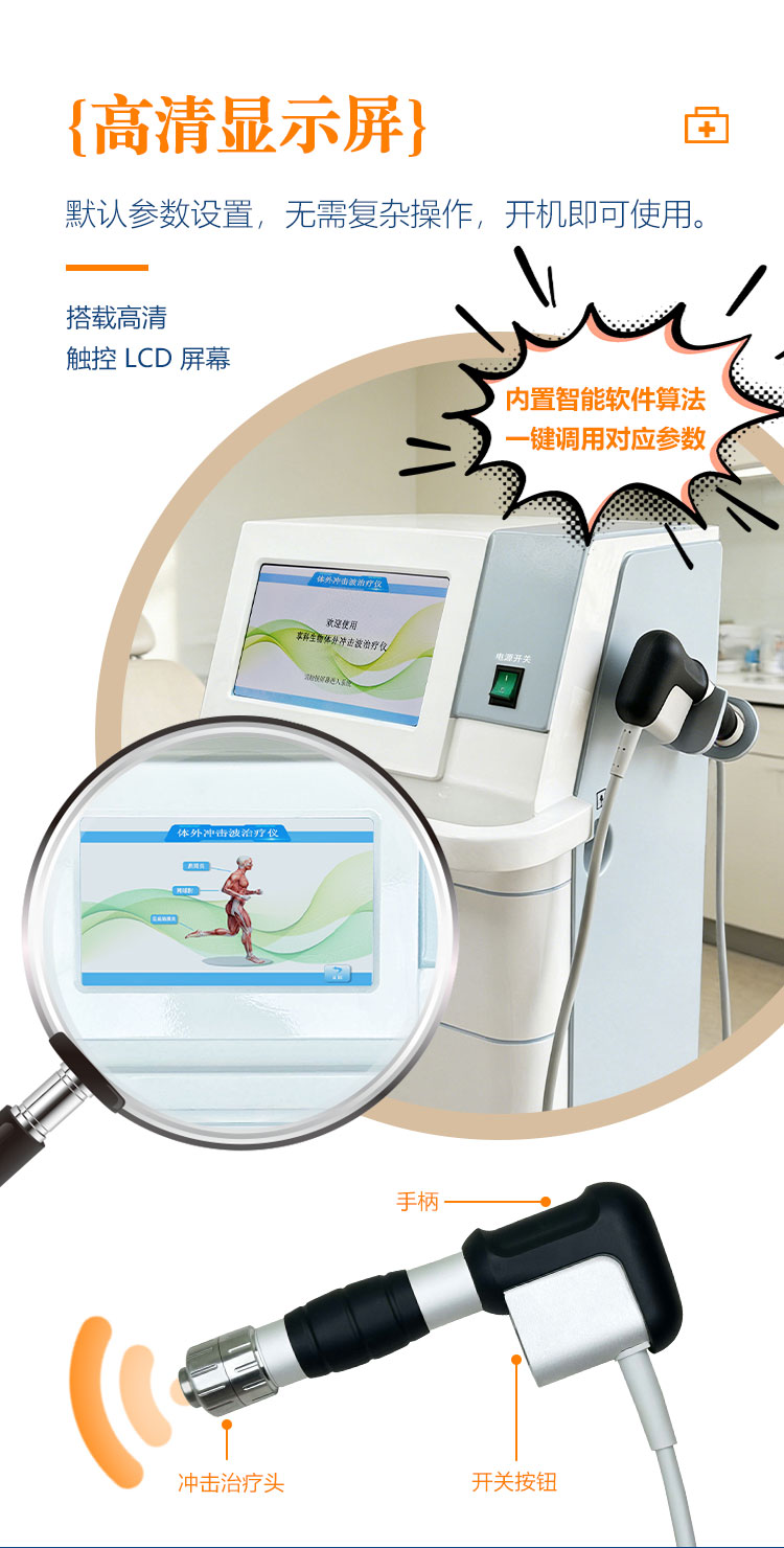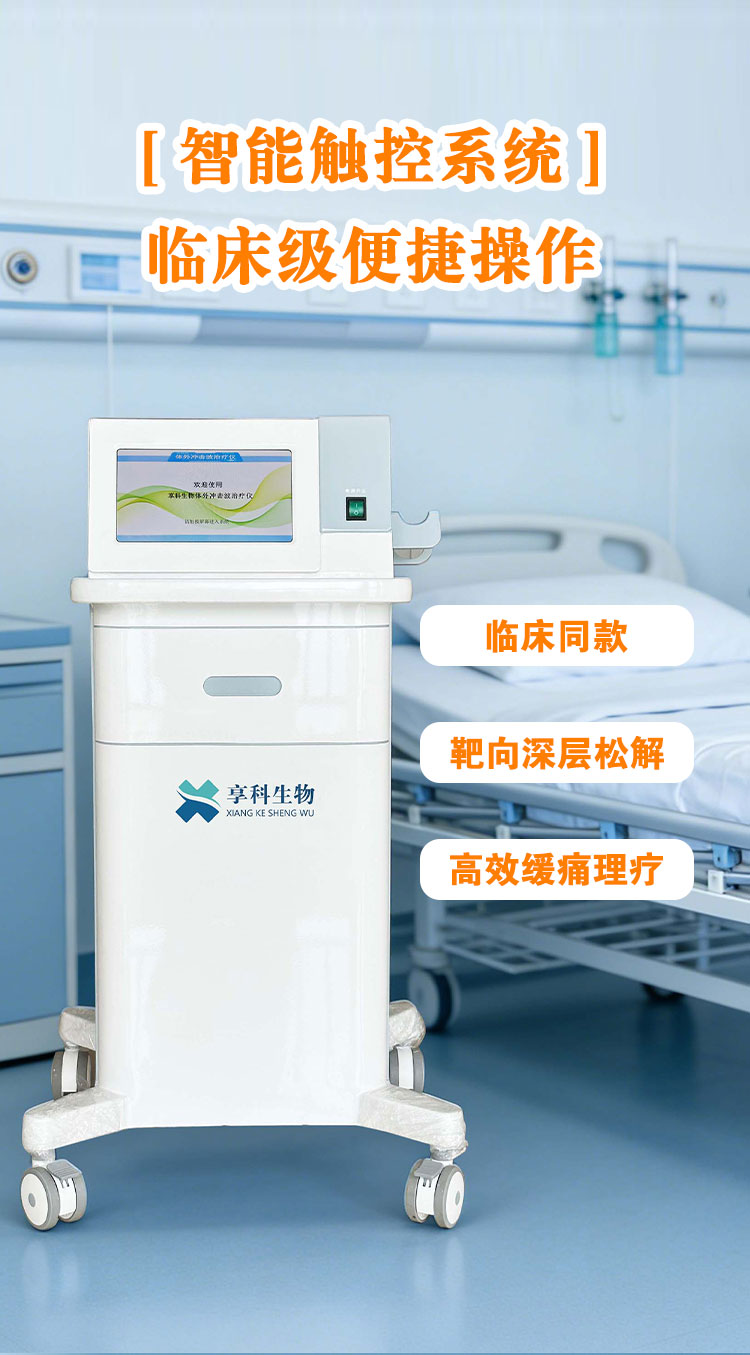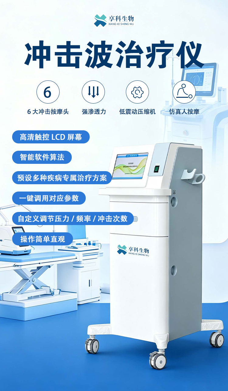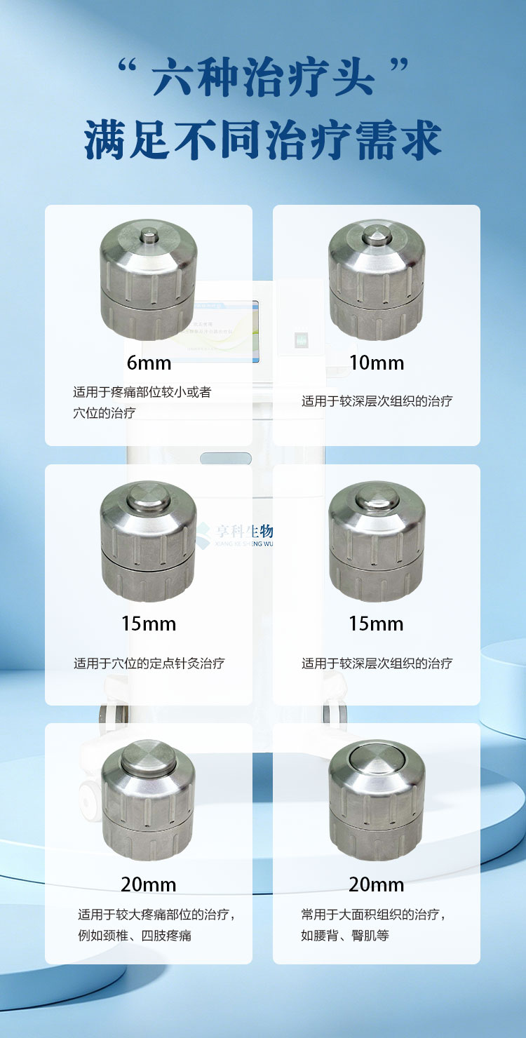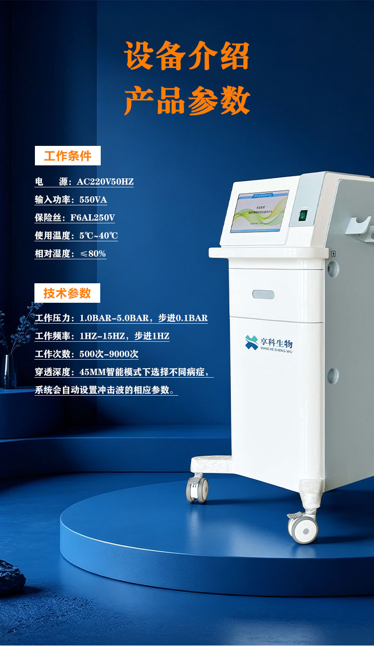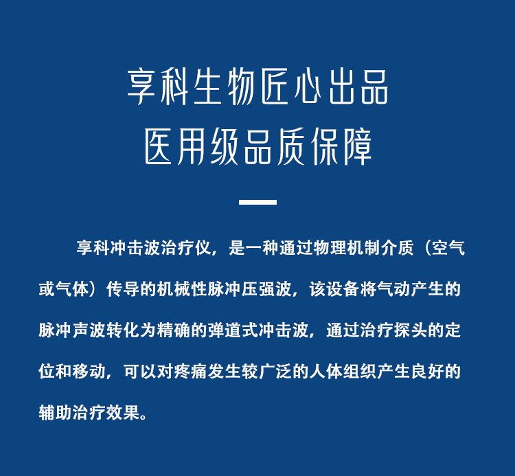 享科冲击波治疗仪,是一种通过物理机制介质(空气或气体)传导的机械性脉冲压强波,该设备将气动产生的脉冲声波转化为******的弹道式冲击波,通过治疗探头的定位和移动,可以对疼痛发生较广泛的人体组织产生良好的辅助治疗效果。